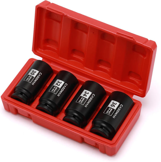 1/2-Inch Drive Deep Spindle Axle Nut Impact Socket Set,12 Point Metric, CR-MO, 30,32,34,36Mm, 4-Piece 1/2" Heavy Duty Impact Socket Set