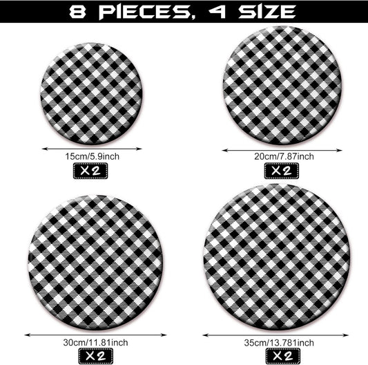 8 Pieces Reusable Bowl Covers Baking Dish Covers Elastic Food Storage Covers Washable Bowl Covers for Bread Proofing, Outdoor Food Storage, 6, 8, 12, 14 Inch (Black-White Buffalo Plaid)
